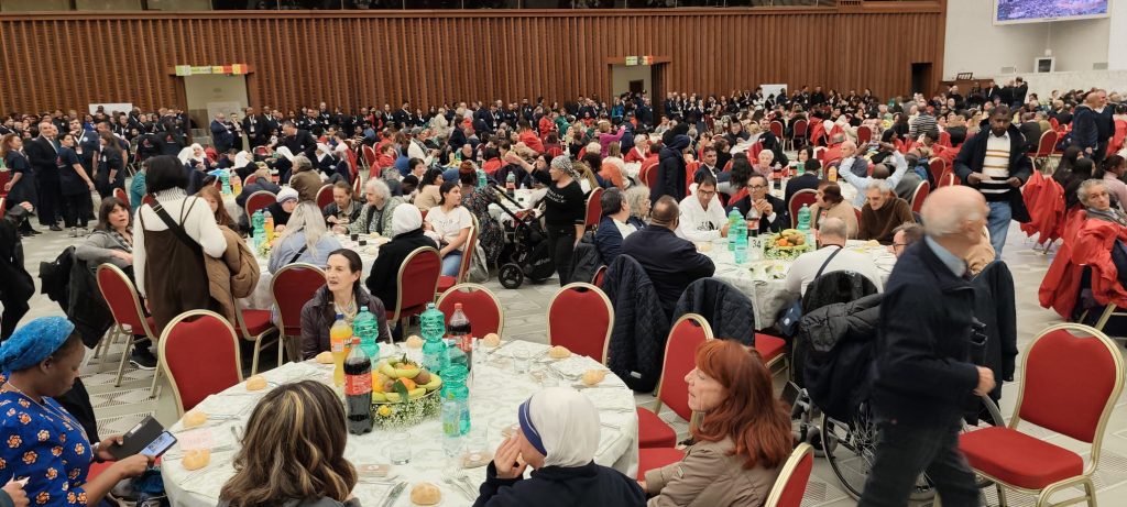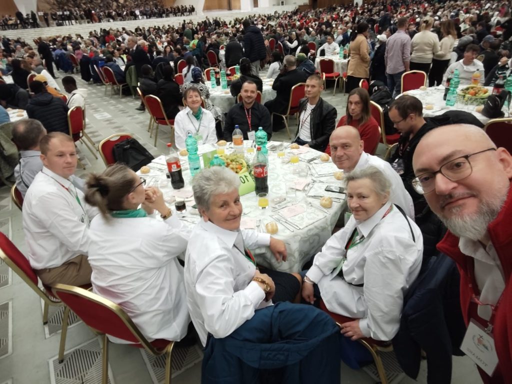 Pielgrzymi z Archidiecezji Łódzkiej, podopieczni organizacji pomocowych, w tym Caritas Archidiecezji Łódzkiej dziś uczestniczą we wspólnym obiedzie z Papieżem Leonem XIV. Spotkanie odbywa się w Auli Pawła VI w ramach